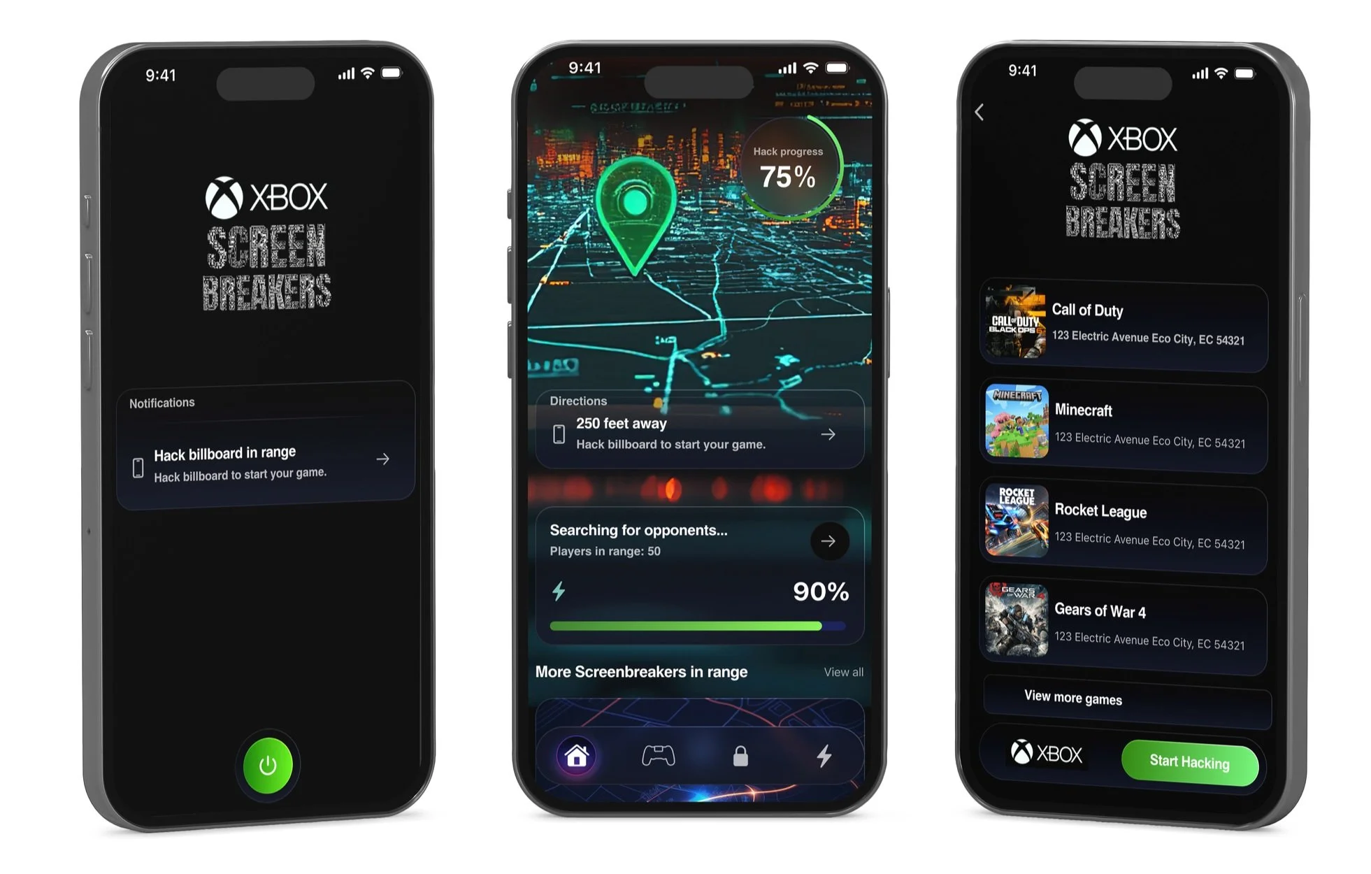 XBOX App users within 250 feet of a hackable billboard get a notification to “Hack” it.